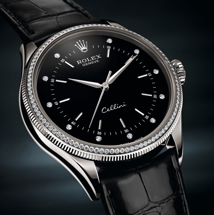 L’an passé, la Rolex Cellini était à l’honneur, elle revient de nouveau en 2015 mais dans de nouvelles versions serties de diamants. Des versions avec boîtier de 39 mm de diamètre en or gris ou or Everose qui se portent sur un bracelet en cuir alligator noir semi-mat cousu et rembordé. Tout simplement l’élégance d’un classique Rolex…